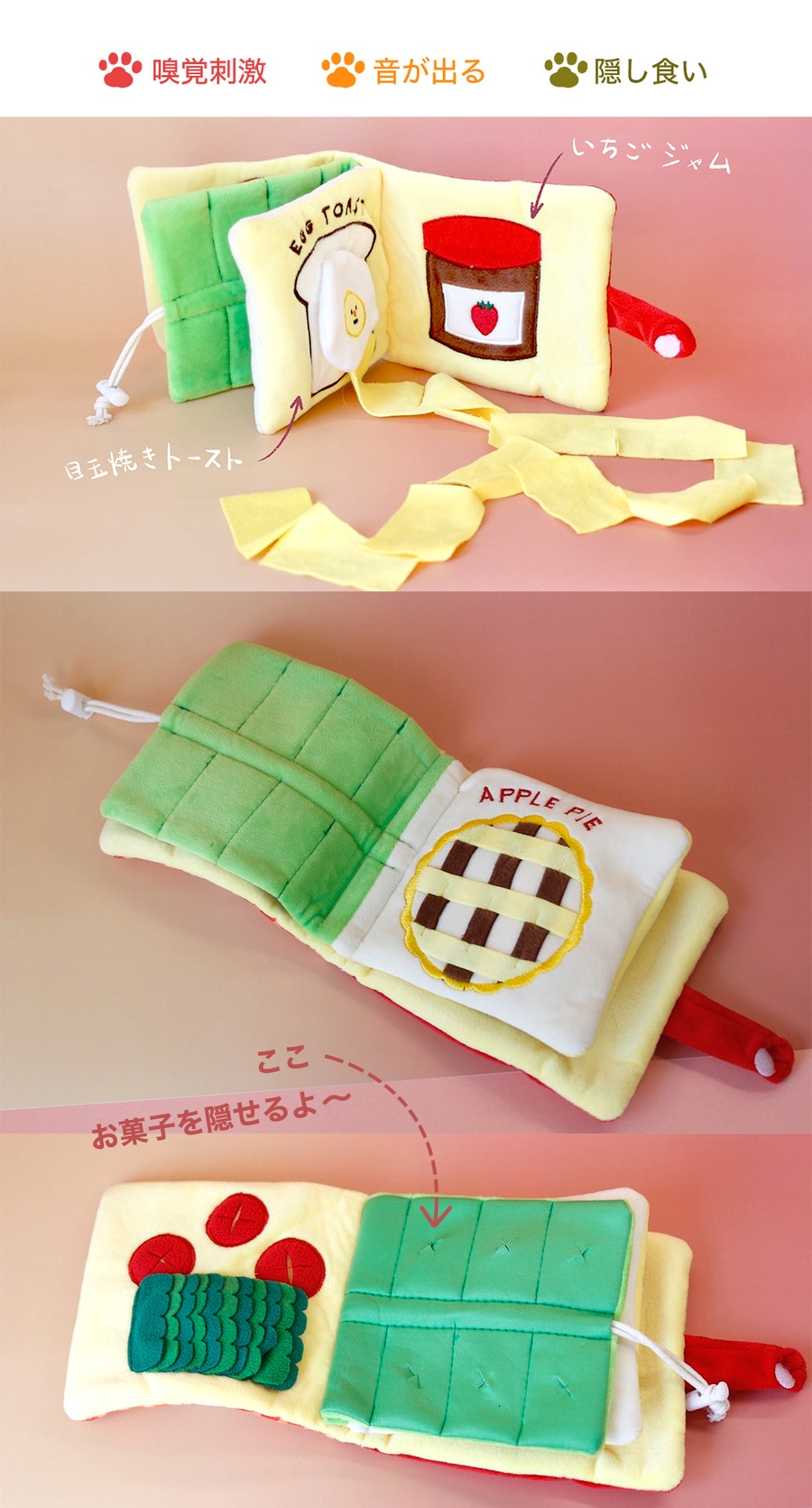 【18.ワンちゃんのランチセット】|嗅覚刺激ノーズワークブック&フルーツおもちゃ3点セット|ストレス解消・歯磨き・音付き