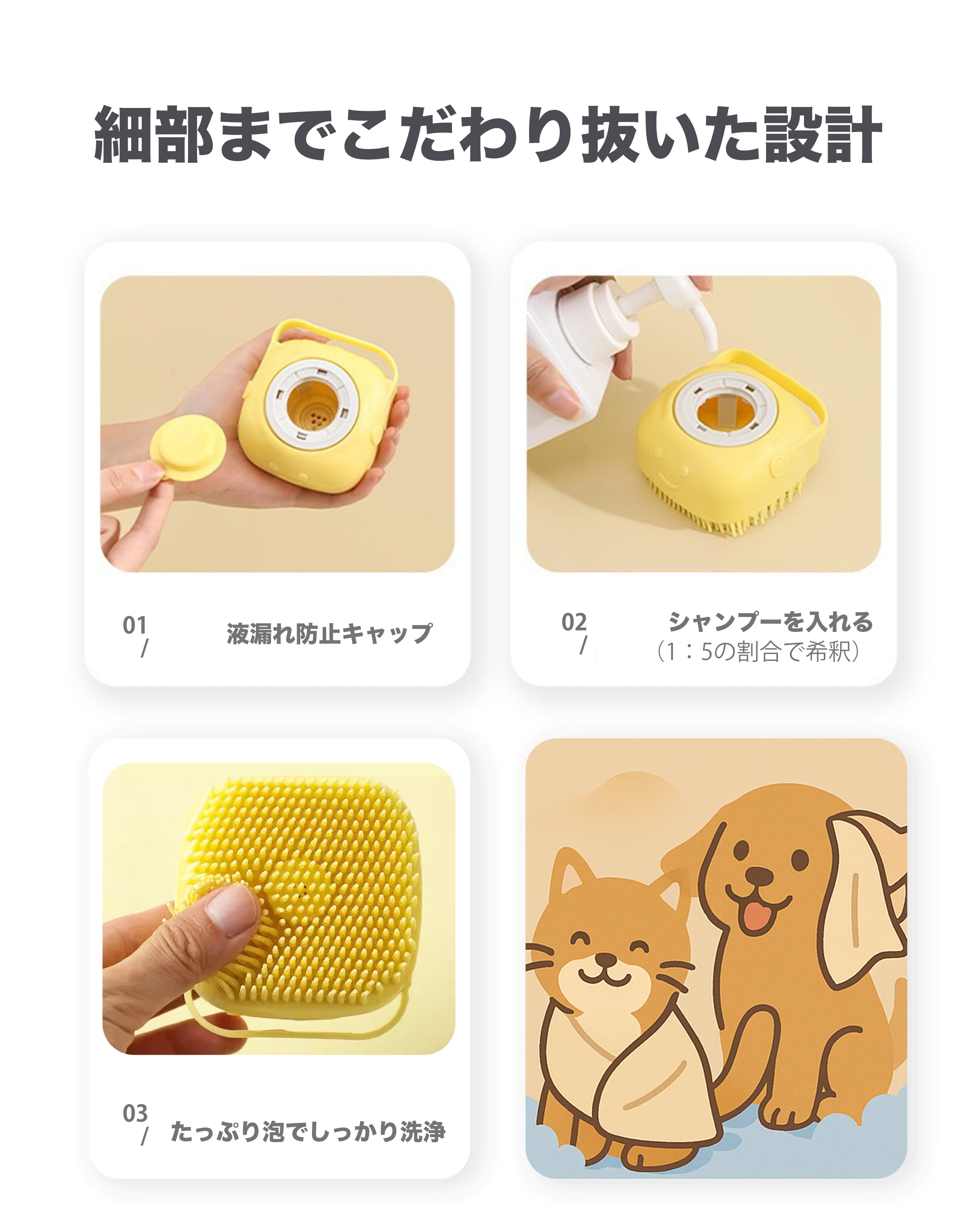 片手で握って、愛犬・愛猫をやさしく洗ってあげてください♪