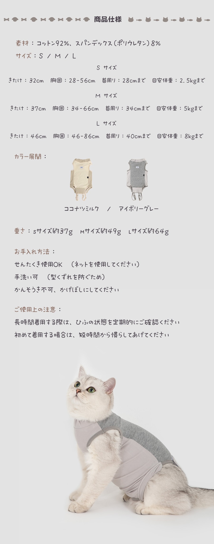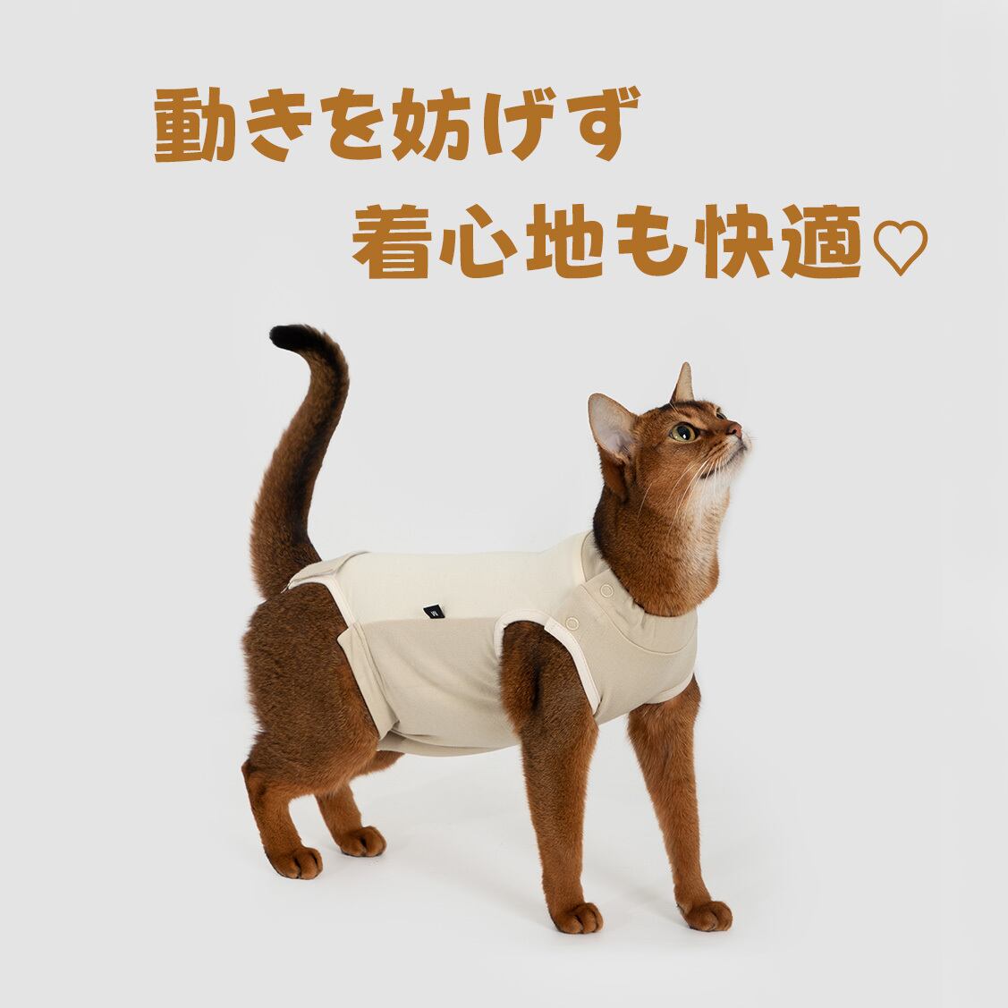 術後のストレスを軽減する、猫ちゃん専用の着せやすい手術服です。